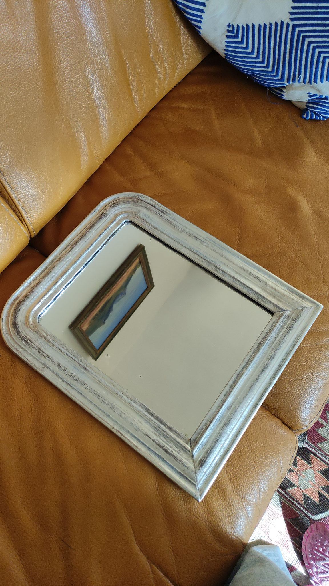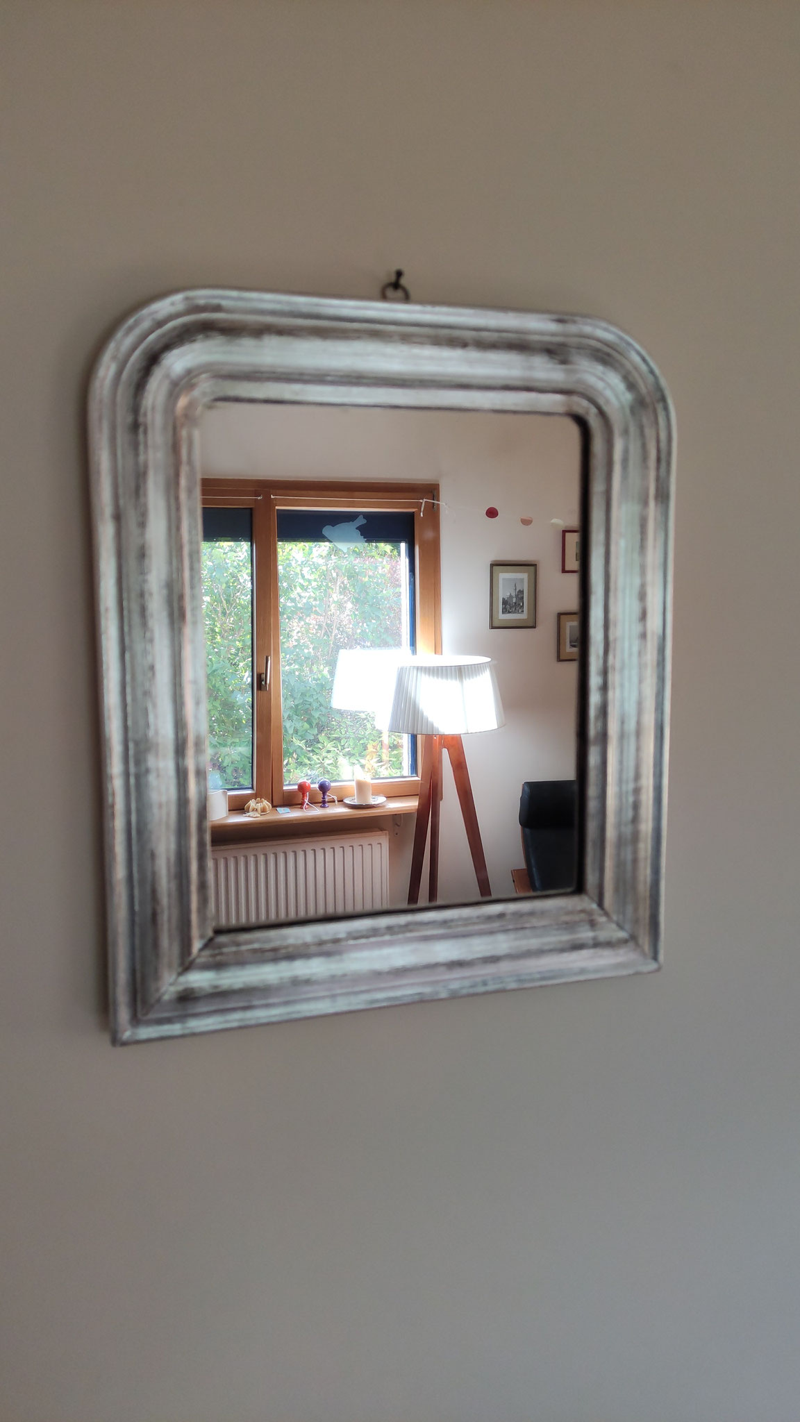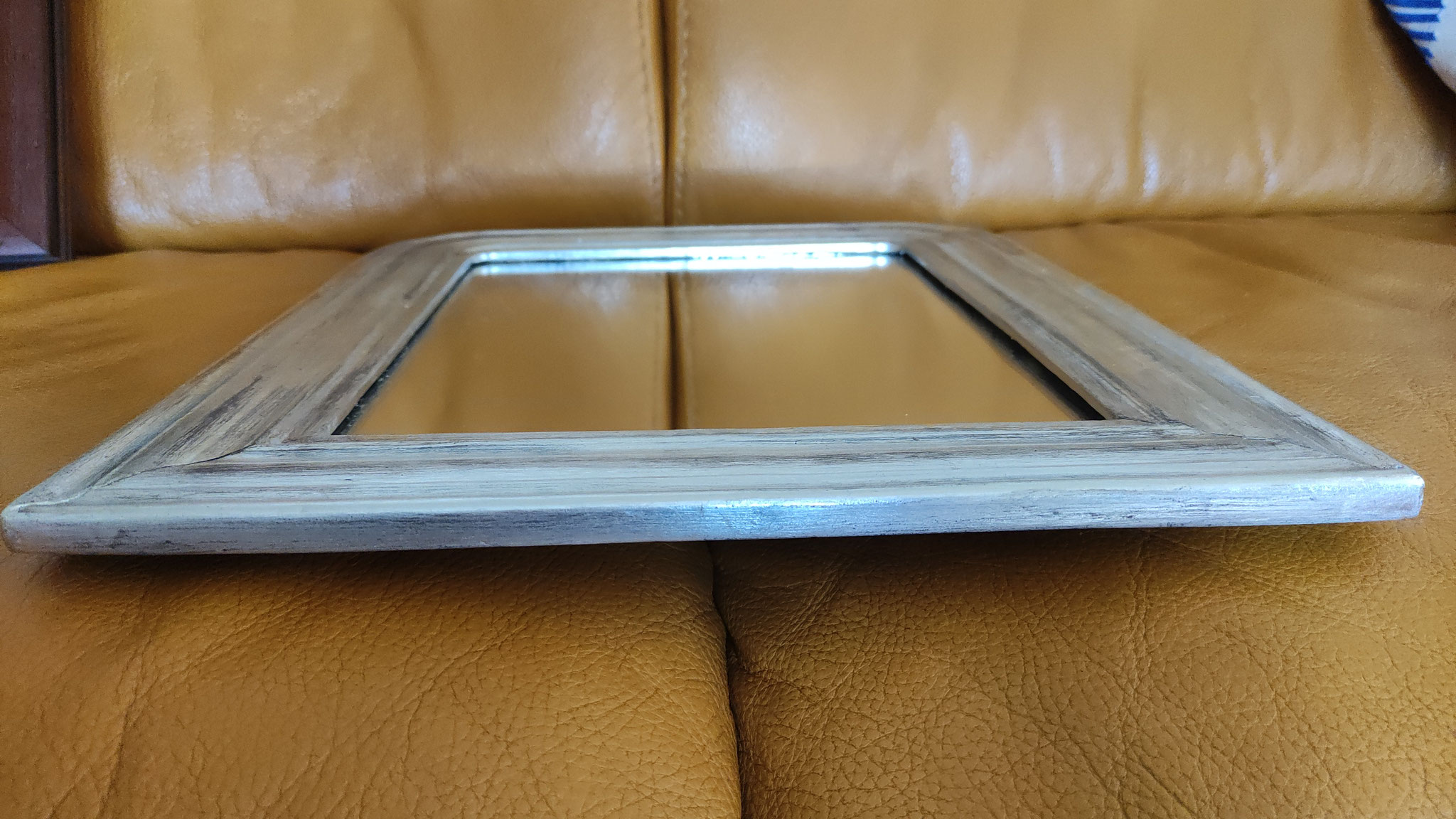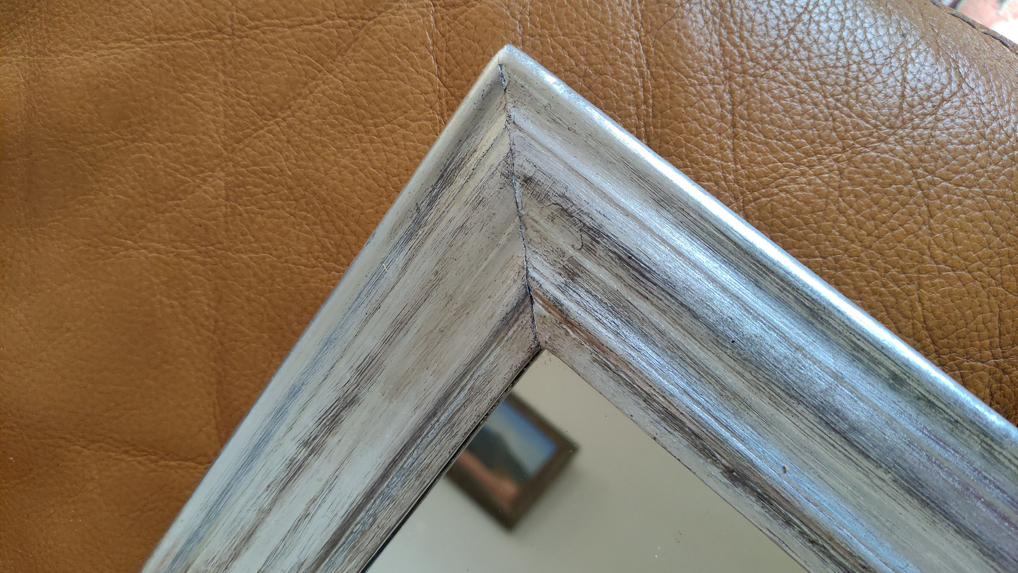 Miroir dans un cadre du XIXe siècle à moulures, rectangulaire, restauré à la feuille de cuivre.