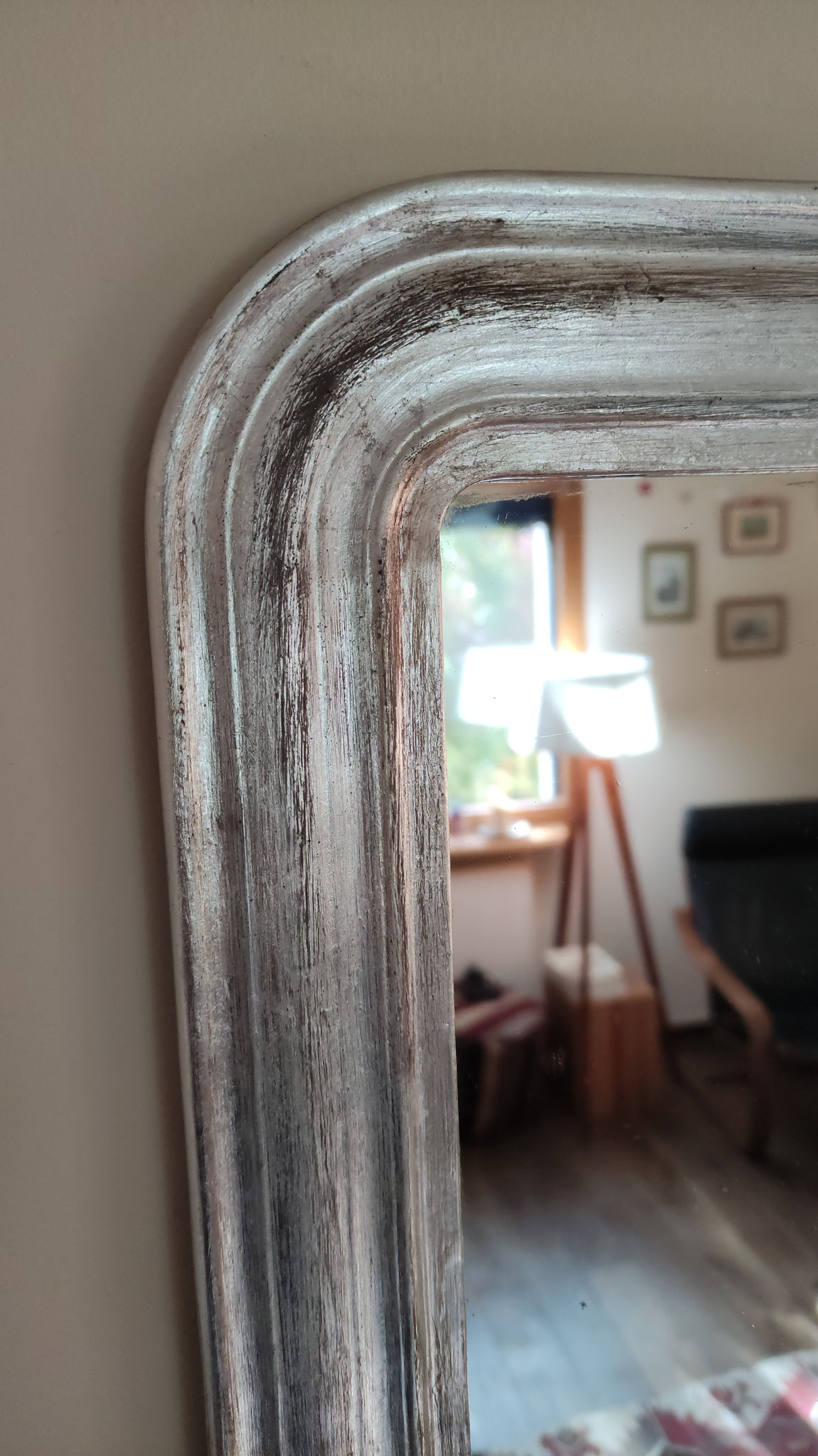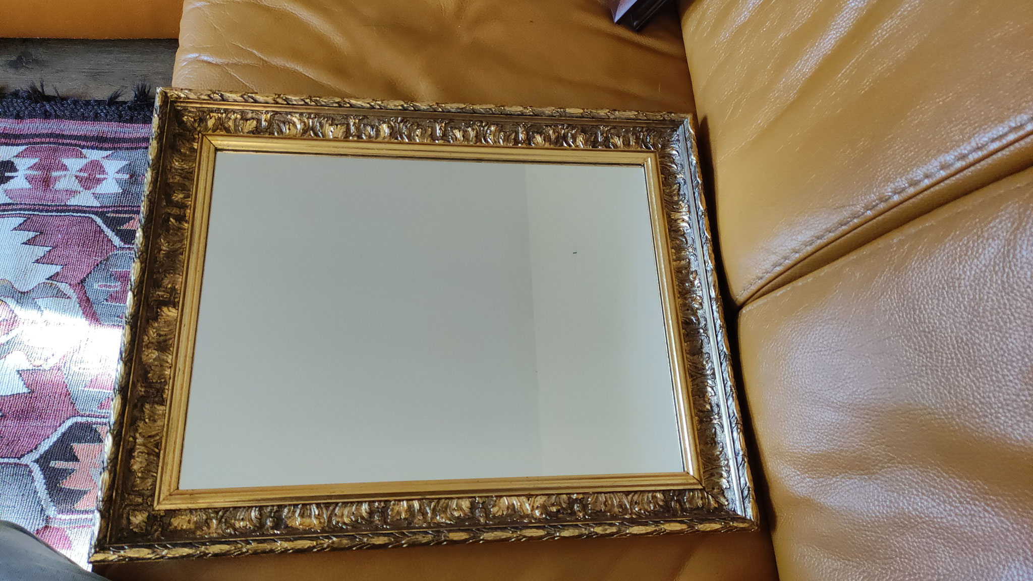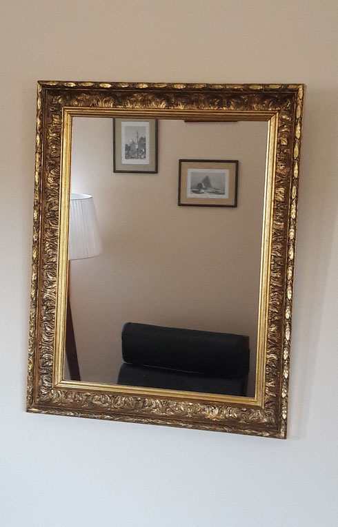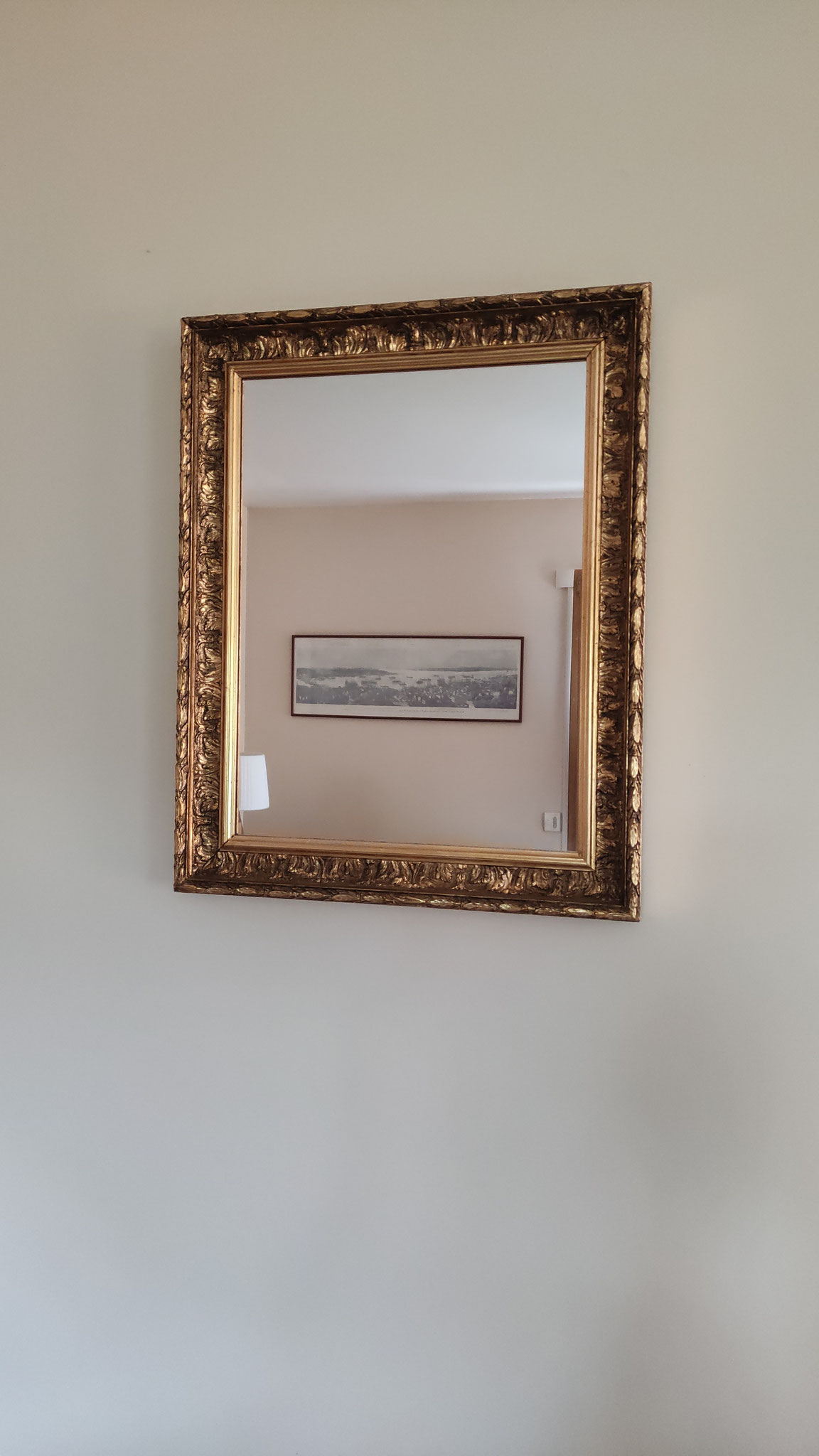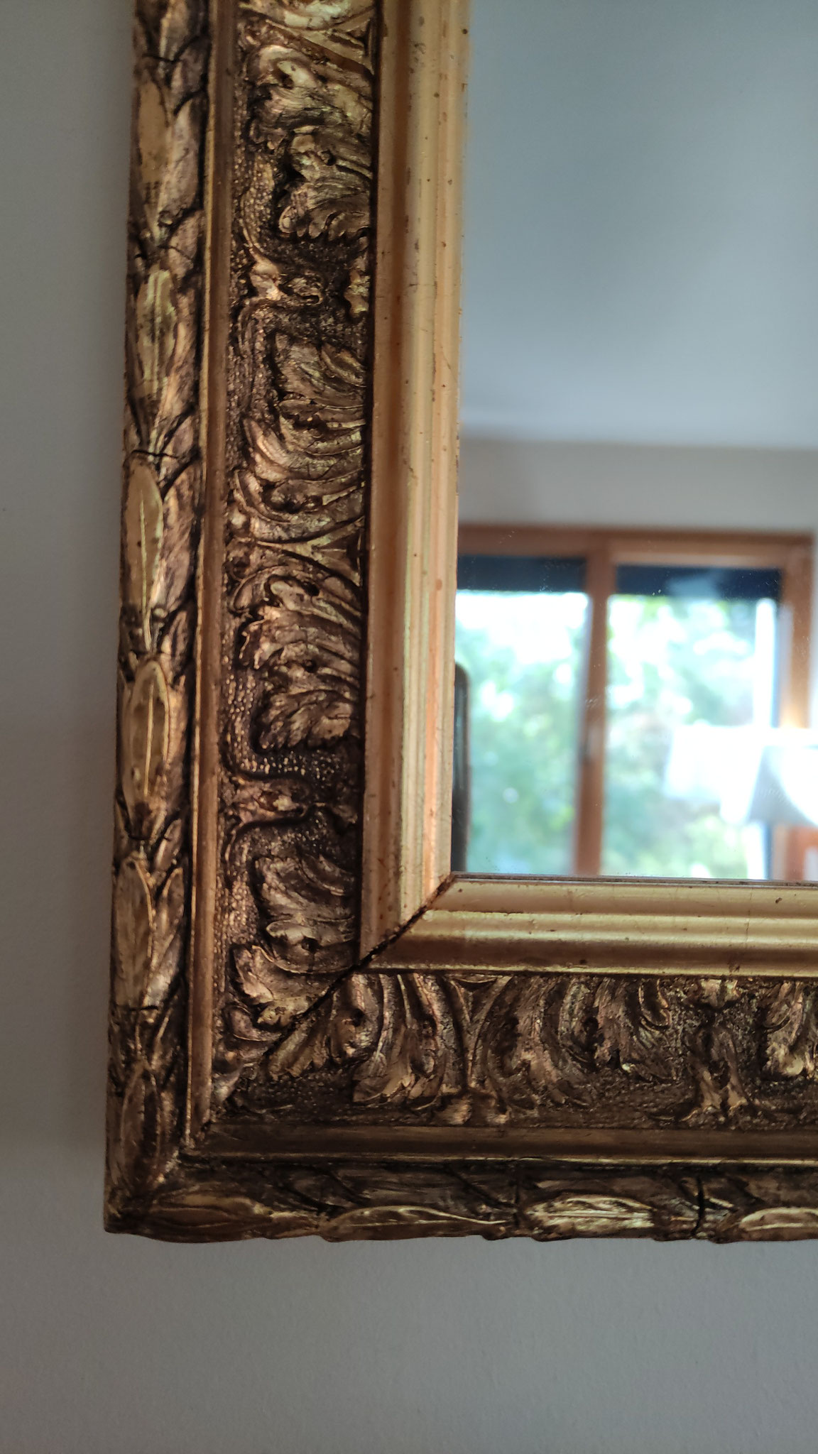 Miroir ancien au plomb, dans son cadre d'origine du XIXe siècle, entièrement redoré à la feuille d'argent.